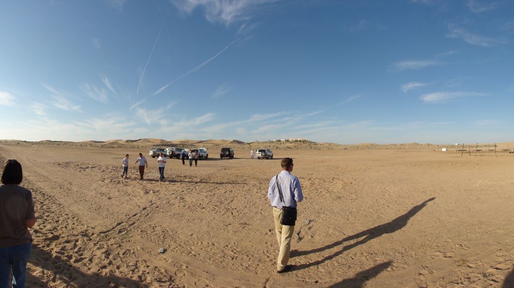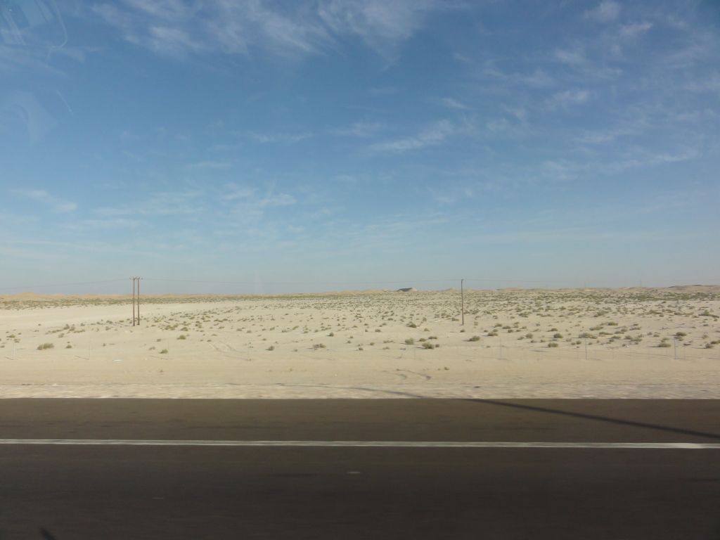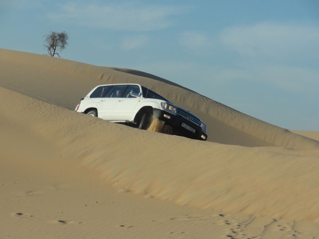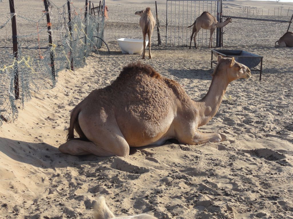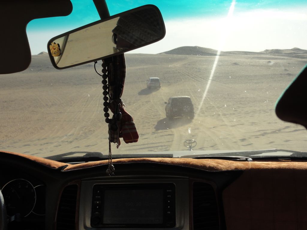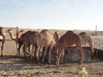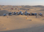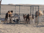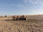 | Wir verlassen die Stadt: Nachdem endlich die Autos da waren, haben wir sofort die Stadt verlassen. Nach kurzer Fahrt verließen wir den Asphalt und fuhren in auf der Sandstraße weiter ... mit unvermindeter Geschwindigkeit! Erster Halt war bei den Kamelen ... |