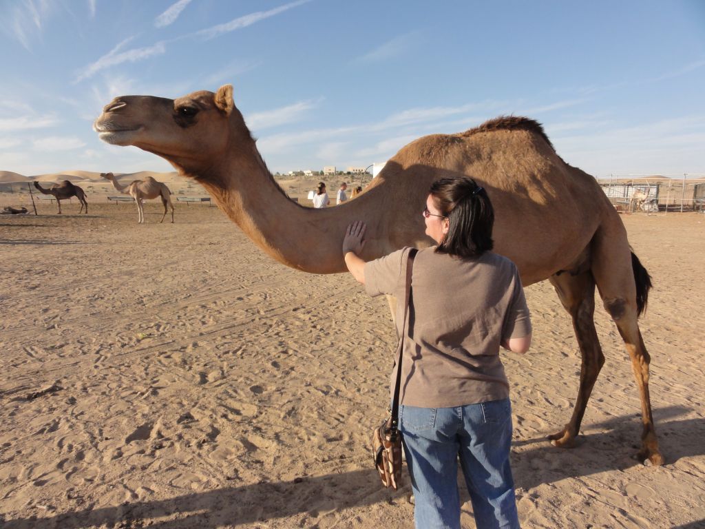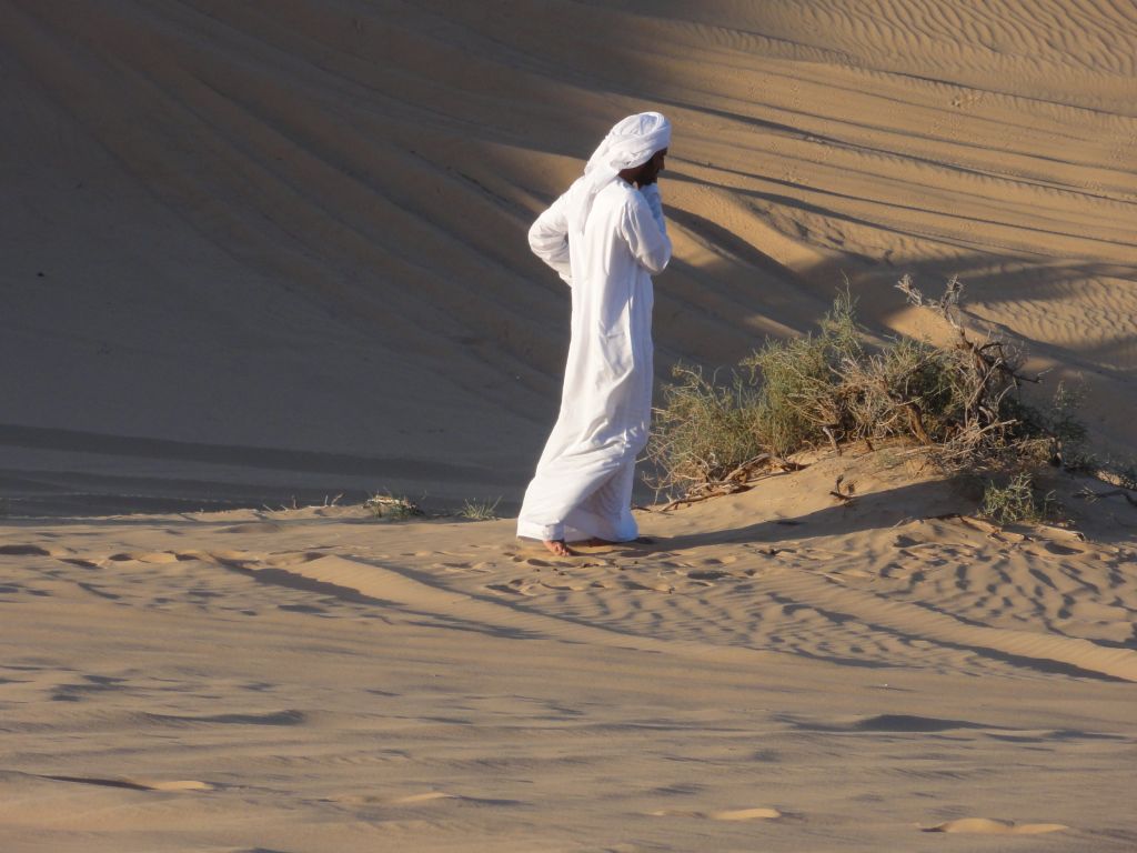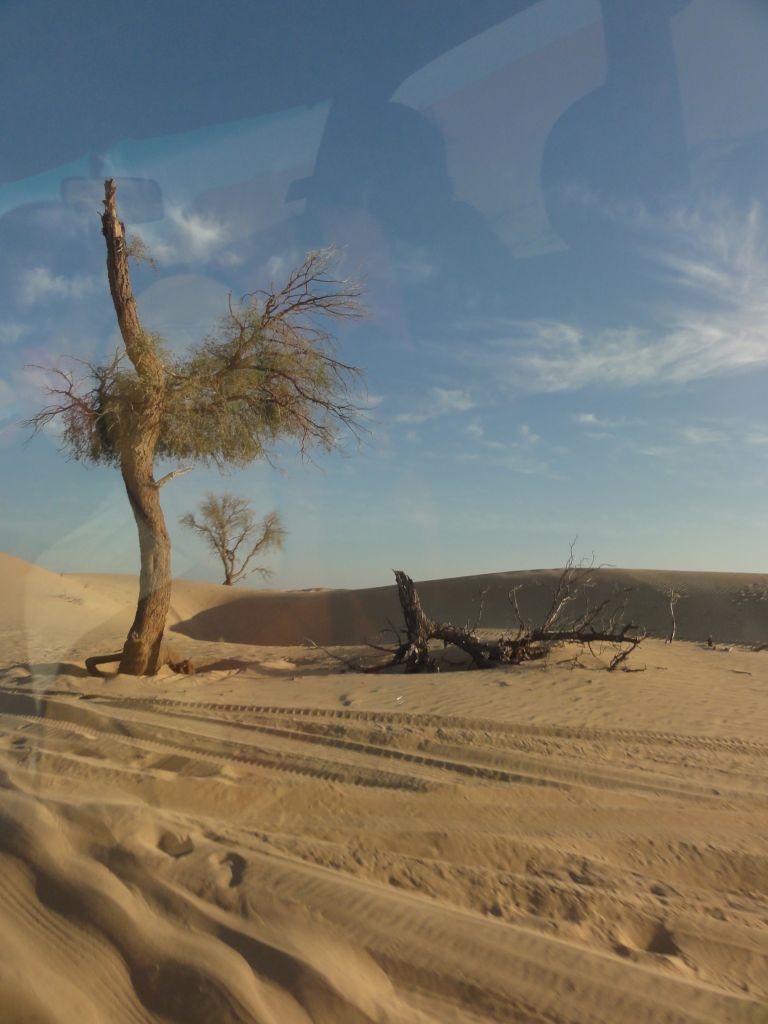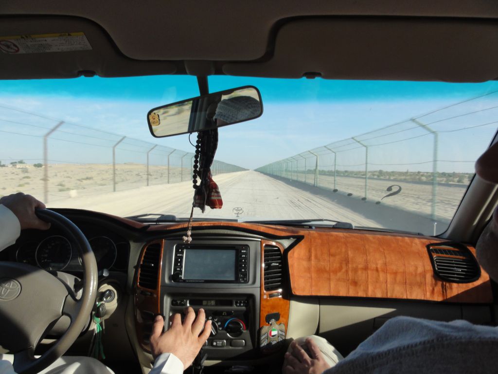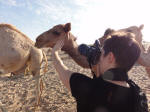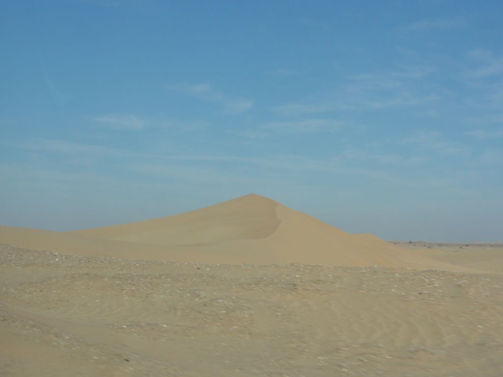 | Wir verlassen die Stadt: Nachdem endlich die Autos da waren, haben wir sofort die Stadt verlassen. Nach kurzer Fahrt verließen wir den Asphalt und fuhren in auf der Sandstraße weiter ... mit unvermindeter Geschwindigkeit! Erster Halt war bei den Kamelen ... |