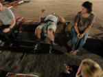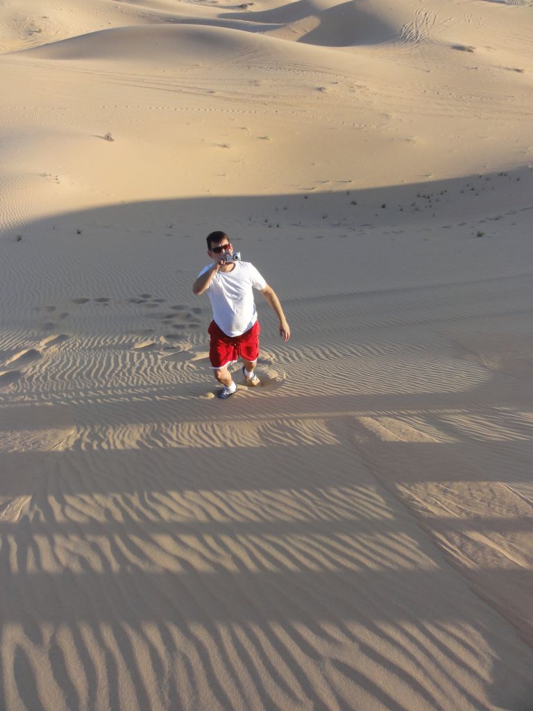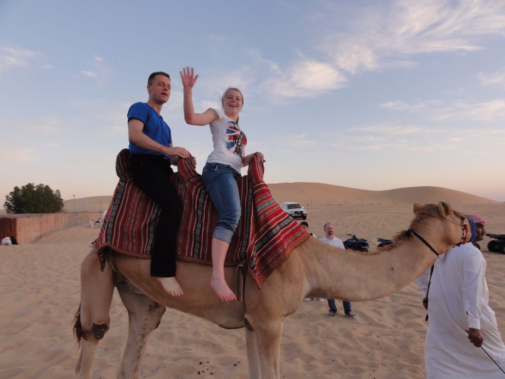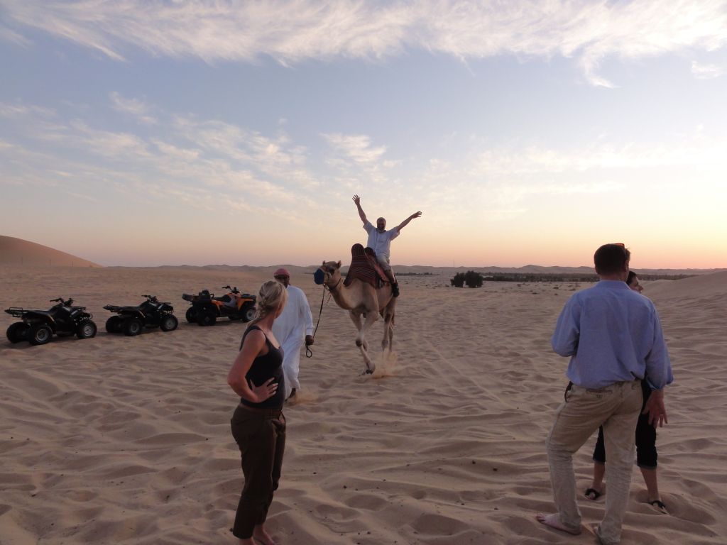 | Nächste Station ... Kamelritt: Nach einer weiteren abenteuerlichen Fahrt über die Dünen kamen wir bei unserem Endziel an ... der Oase. Dort wartete bereits ein Kamel, Quadbikes und Sandboards auf uns ... |