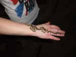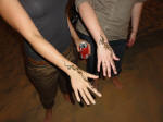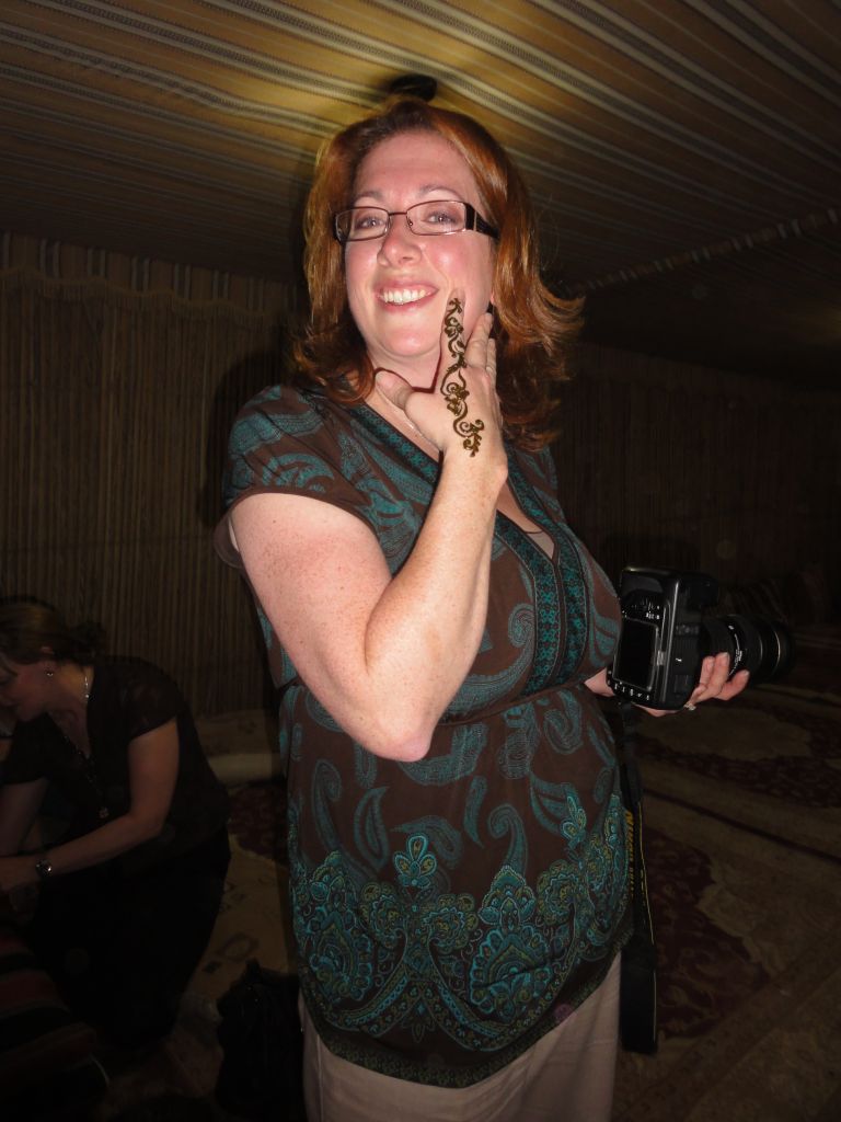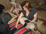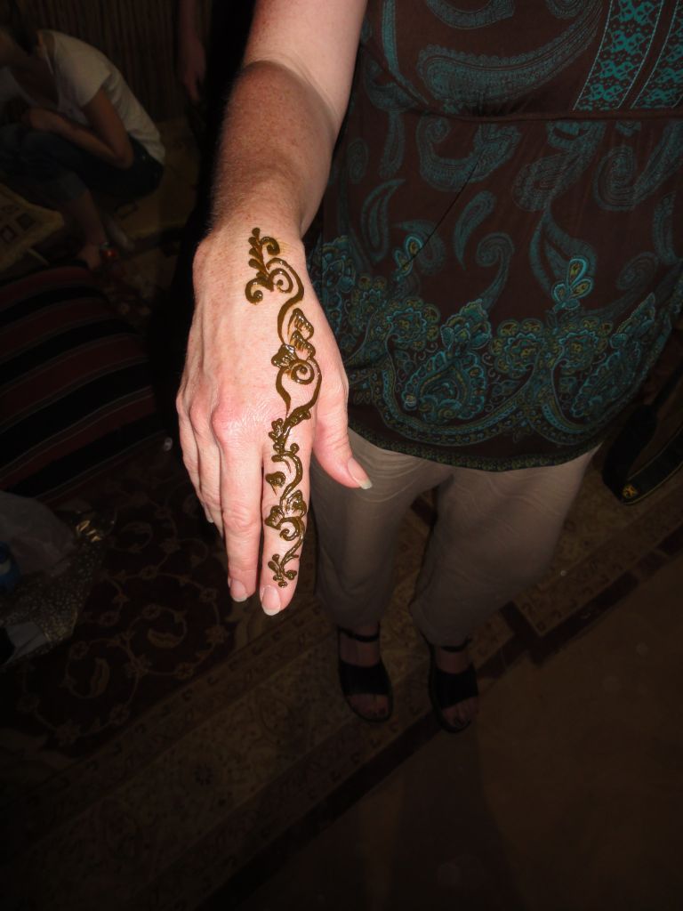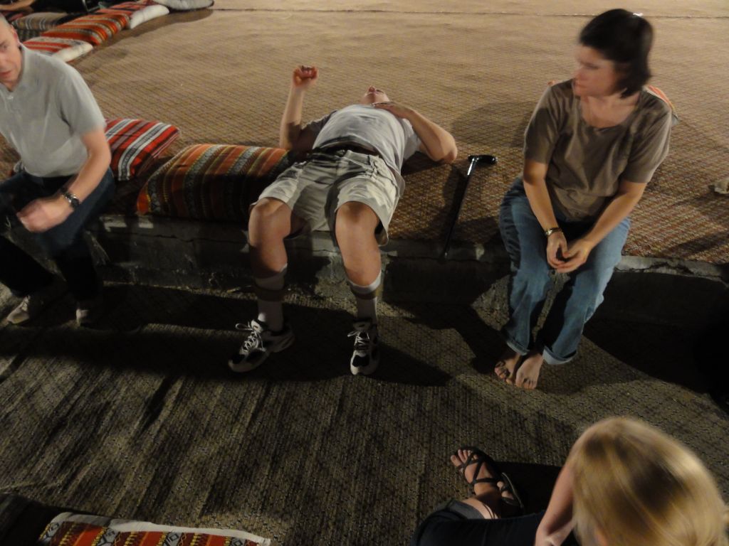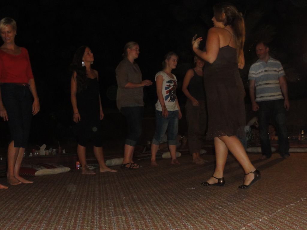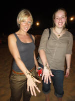 | Rast in der Oase: Nach einem wunderschönen Sonnenuntergang wurde es sehr schnell dunkel ... und wir folgten unserem Führer in die Oase. Dort warteten weitere Attraktionen auf uns ... Henna-painting, Bauchtanz, Essen und Unterhaltung! |
